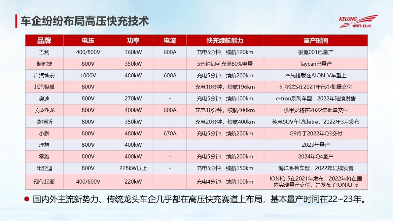 从2020年8月交通部发布政策,提及“引导在高速服务区建设大功率充电设施”;到今年1月份发改委发布政策,提及“鼓励发展大功率充电”。国家多部门陆续出台一系列政策,支持和推动大功率充电技术的发展与应用。