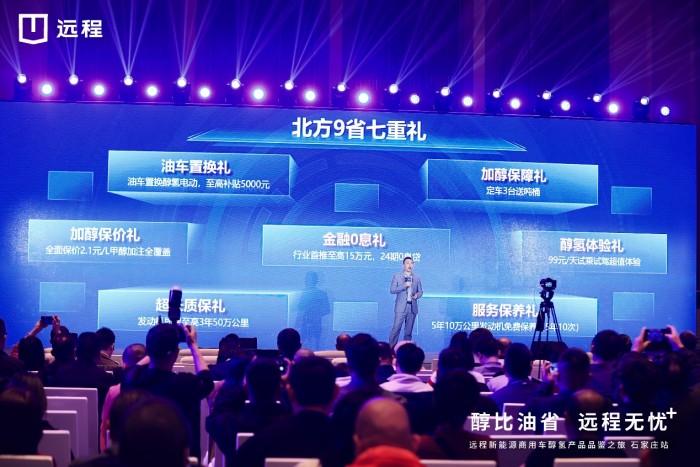 此次,远程此次围绕北方9省(新疆、甘肃、内蒙古、陕西、山西、天津、河北、辽宁、黑龙江)定制了7项专属大礼包,远程用户可享受2.1元/L的加注甲醇全面保价、最高5000元/台的“油车置换补贴”,以及15万24期0利息的金融政策等。此外,远程售后服务还隆重推出了专属服务权益——“程心醇意服务权益”。其包含“增程器至高可享3年50万公里质保,核心零部件只换不修”、“5年或10万公里增程器免费保养”、“车辆故障提供等值服务产品”及“车辆故障免费救援”4项重磅服务权益。通过提供完善的政策,远程可以帮助用户降低用户初始购置成本,为北方地区用户提供强有力的运营保障,同时与地方政策形成协同效应,加速醇氢产品市场渗透。